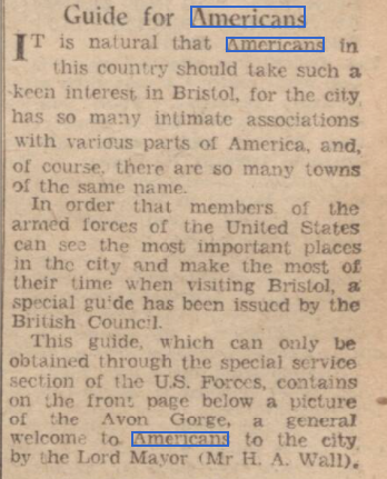 How did the relationship between the U.S. Armed Forces and the people of Bristol develop over the course of WW2? Was it always cordial or did it sour over time? Through a series of newspaper articles from the British Newspaper Archive, we tell the story of the fluctuating friendship and respect between the hosts and their American guests.