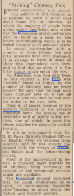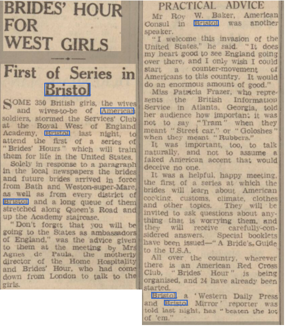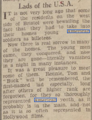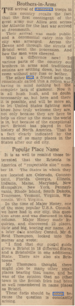By July 1942, U.S. Armed Forces were arriving in greater numbers and the Western Daily Press were keen to emphasize the strong bonds between Bristol and America.