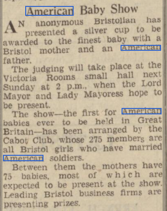 Of course, with many marriages came many babies and an unusual competition was held to find the ‘finest’ baby as a result of an American father and a Bristolian bride.