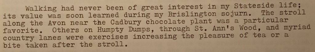 This remarkable and beautifully written account of a G.I.’s time in Brislington was brought to my attention by Stella Man of Glenside Hospital Museum who found it in their archives after I visited. The museum is highly recommend for its history as a both psychiatric and Great War hospital (Open Wednesday 10am – 1pm, Saturday 10am – 4pm).