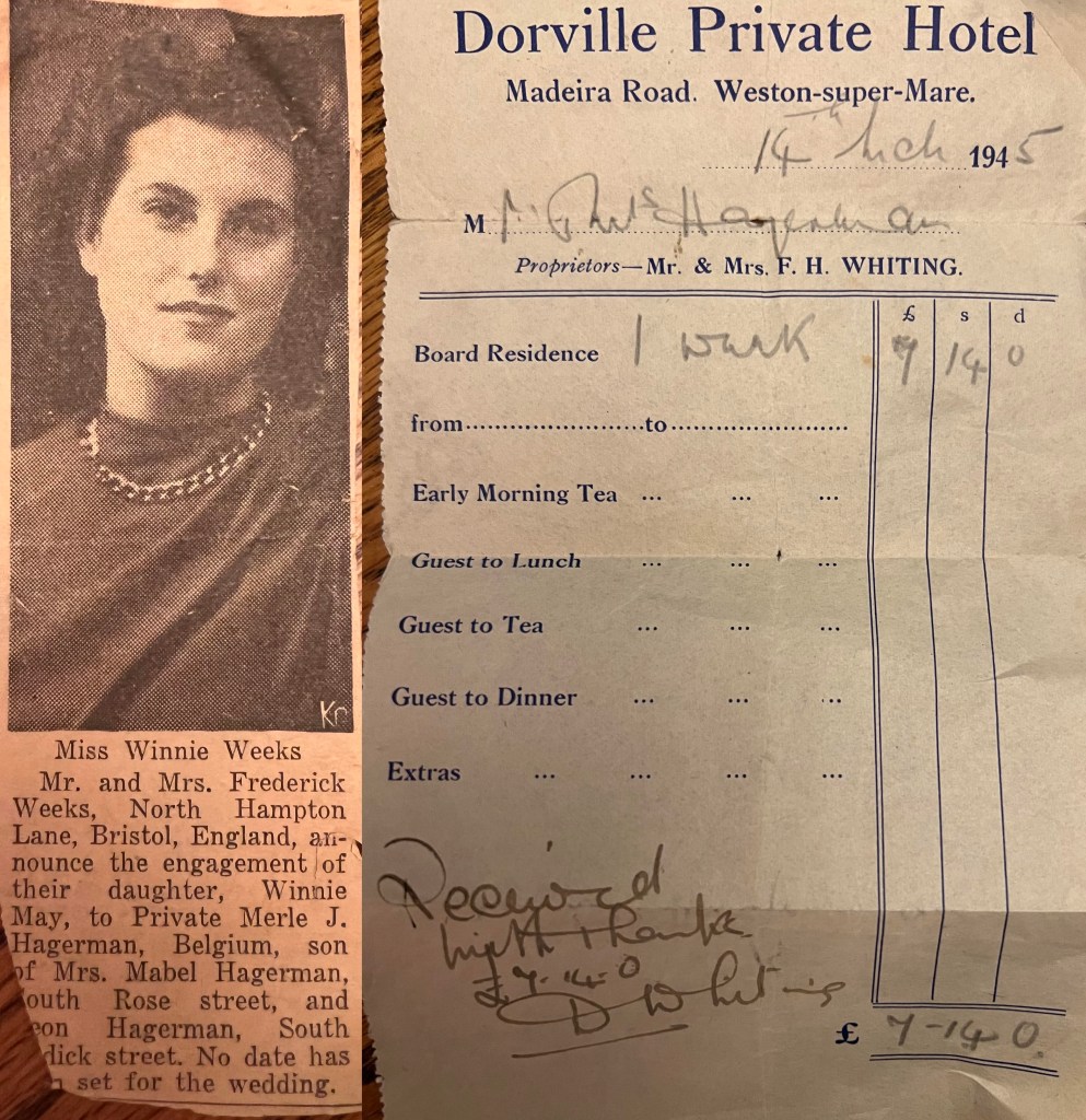 Following the 17th Signal Battalion’s involvement in the Battle of the Bulge (16th Dec 1944 to 28th Jan 1945), Merle was given a short period of leave. While many of the men took the chance to visit Paris or the French Riviera, Merle was destined for Patchway. He sent a telegram to Winifred telling her to get a ring and he would be back so they could marry.