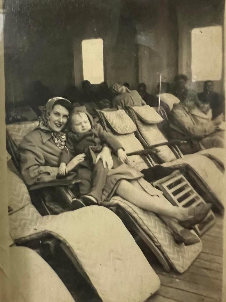 Following VE Day, Merle returned to New York and was demobbed. Winifred followed him with many of the war brides from the West Country. She arrived at Southampton ready to depart on the ‘Queen Mary’ but being neither pregnant or with children she was put on the ‘President Tyler’ which looked like a dinghy be comparison. Halfway across the Atlantic the ship ran out of fuel.