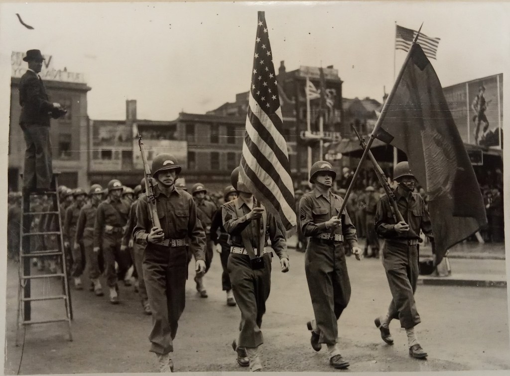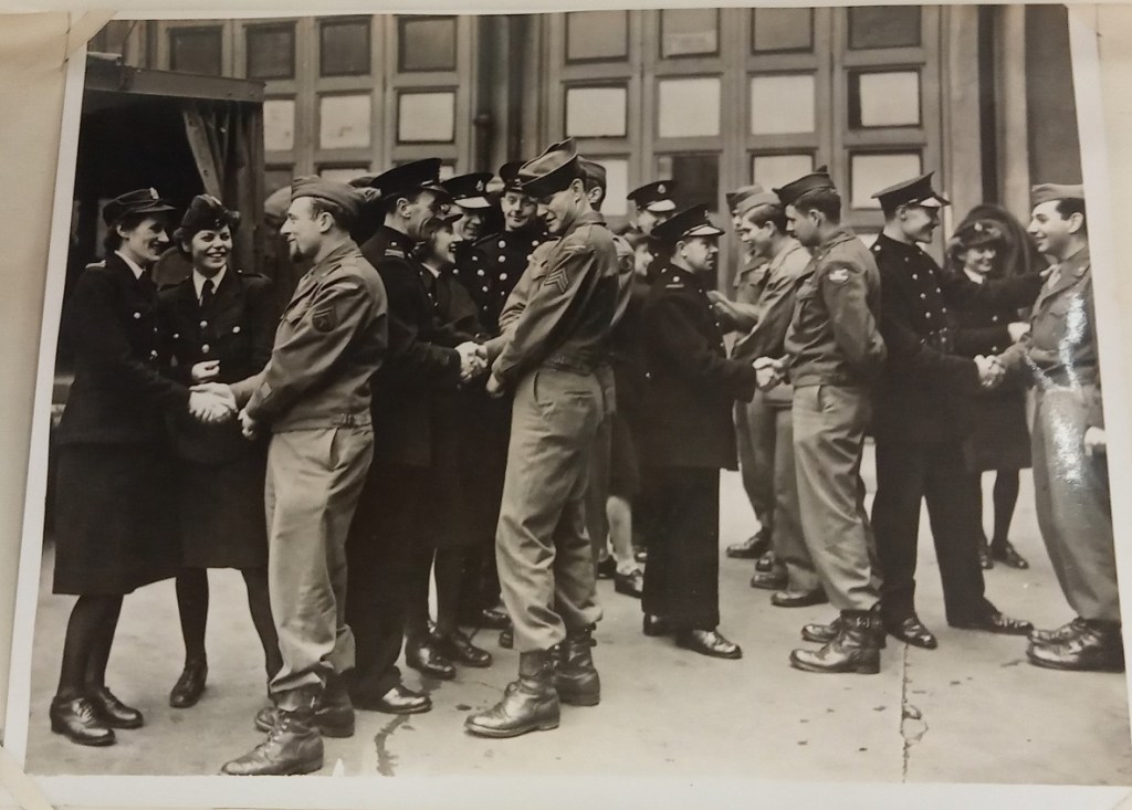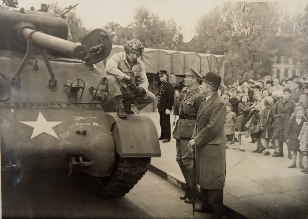 US Army parade along Wick Street, Brislington, 1945 (Bristol Archives 35897/33)Officer taking salute on the Brislington Parade outside Brislington Library, 1945 (Bristol Archives 35897/33)Men of the 304th Port Company, US Army marching through the St Augustine’s Parade, Bristol, September 1945 (Bristol Archives 35897/33)Training course for US Army personnel at Bridewell Fire Station, 1945 (Bristol Archives 40887/26)American soldiers bid farewell to staff at Bridewell Fire Station, 1945. The US soldier second from right looks to be from 84th Infantry ‘Railsplitters‘. The should patch just showing in the centre could be 29th Infantry Division, Blue & Grays (Bristol Archives 40887/26)Sherman Tank being shown off to Bristolians (Bristol Archives 35897/33)Sherman Tank being shown off to Bristol lad (Bristol Archives 35897/33)US Transportation Corps steam engine mashalls trucks at Avonmouth Docks (KYP Bristol)Members of 304th Port Company at Blaise Castle, April/May 1944 (from Longshore Soldiers)G.I.s at Shirehampton Golf Course Camp (KYP Bristol)The remains of the camp at Shirehampton Golf Course, still present in 1946 (KYP Bristol)Accommodation and offices or wards at the Vassall Centre in Fishponds (KYP Bristol)American soldiers visit Wesley’s Chapel, Horsefair Bristol on 12th April 1945 (IWM)American soldiers and Red Cross Workers arrive in Bristol, October 1942 (Bristol Post)U.S. Army parade at the bottom of Park Street (Bristol Post)G.I.s and Bristol girls at Weston Super Mare (John Tarling)G.I. at Weston Super Mare (John Tarling)