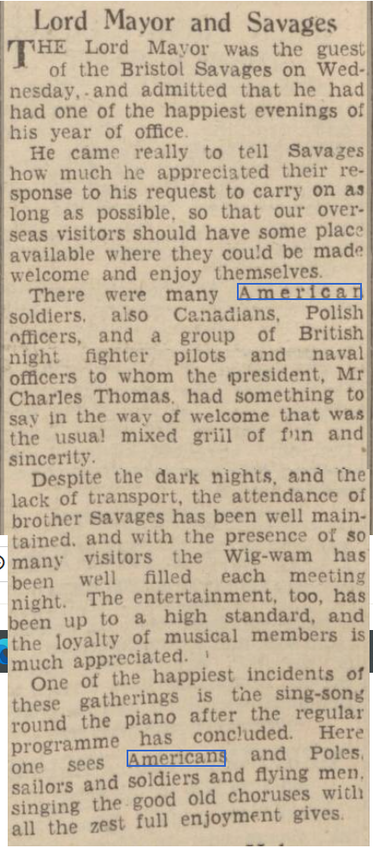 How did American servicemen relax during their time in Bristol? The answer was both by adopting the ways of Bristolians and by bringing their own entertainment. These contemporary newspaper articles tell the story.
