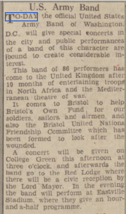 After many frontline and logistics troops had left for D-Day, the US Army Band arrived to entertain both the locals and the many servicemen still stationed in the city.